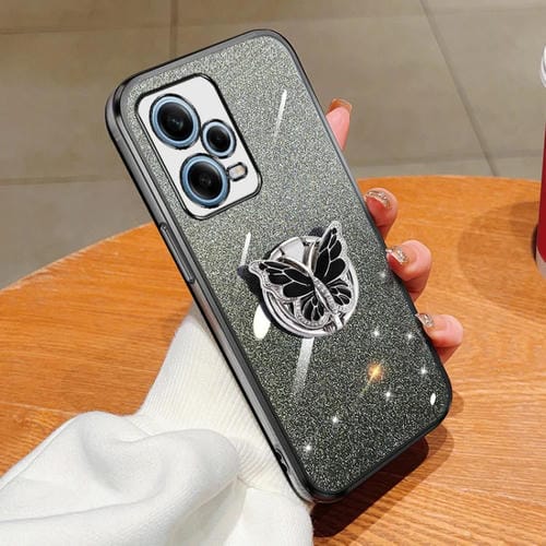 Para Redmi Note 12 Pro 5G Funda para Teléfono de TPU con Soporte de Mariposa con Brillo Degradado Global Plateado (Negro)
