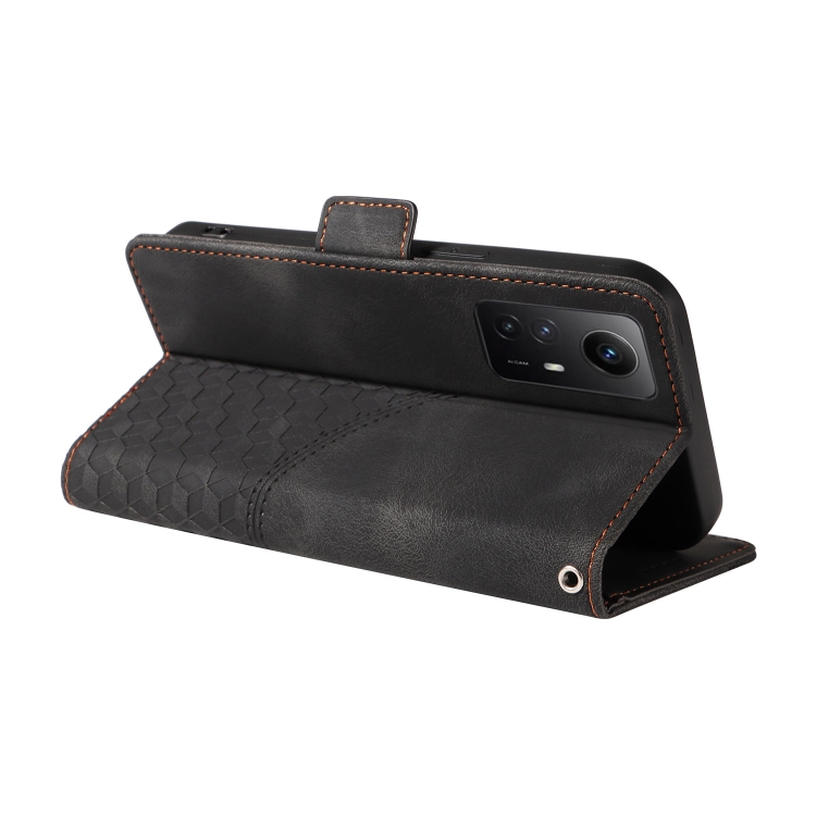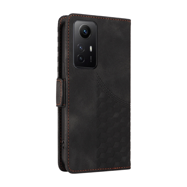 Para Redmi Note 12S 4G Funda de Teléfono de Cuero Estrellado con Rombo En Relieve Global (Negro)
