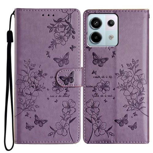 Para Redmi Note 13 Pro 5G Funda de Cuero para Teléfono con Mariposas y Flores (Púrpura)