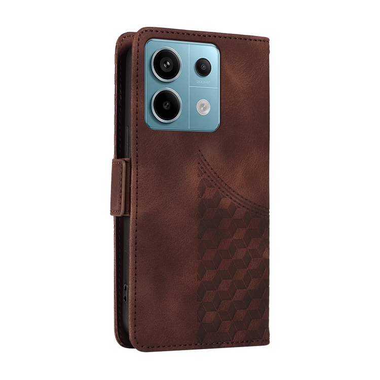 Para Redmi Note 13 Pro 5G Funda para Teléfono de Cuero Estrellado con Rombos En Relieve (Marrón)