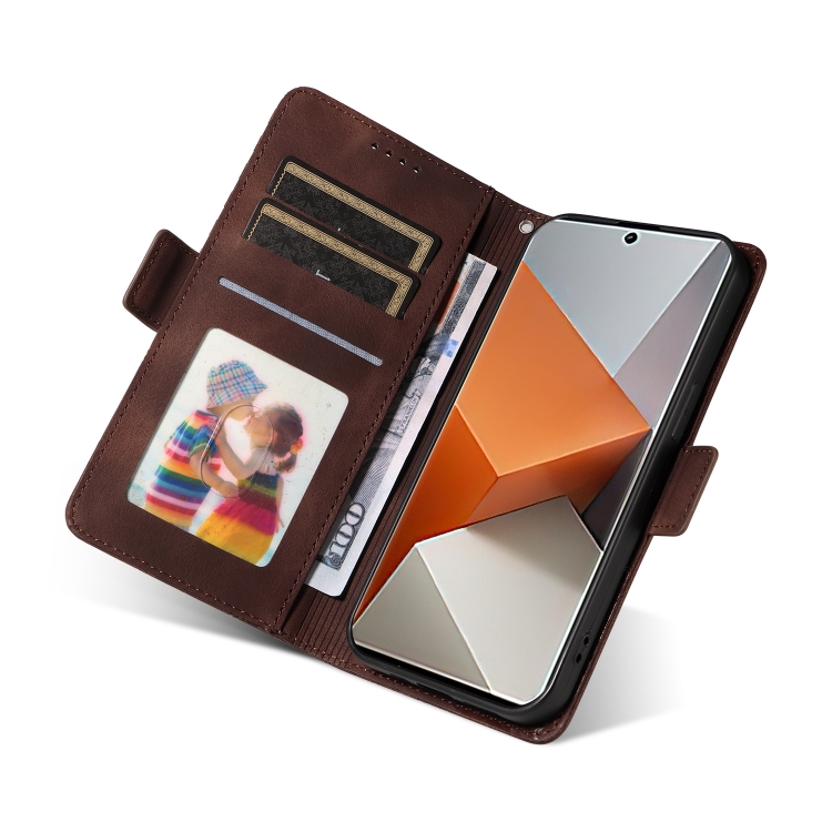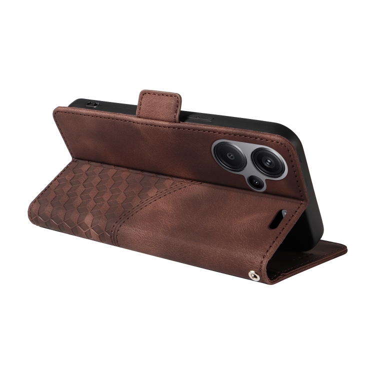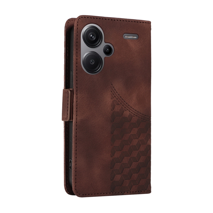 Para Redmi Note 13 Pro + 5G Funda para Teléfono de Cuero Estrellado con Rombos En Relieve (Marrón)