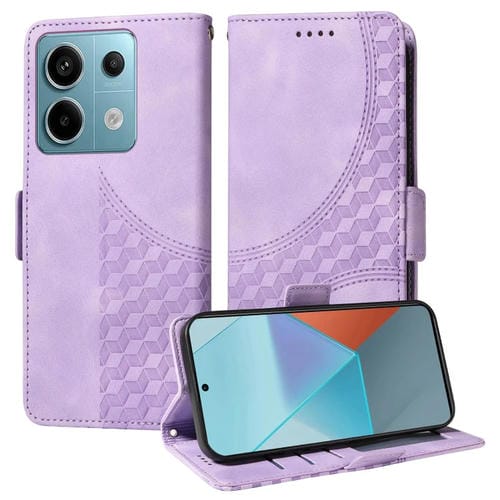 Para Redmi Note 13 Pro 5G Funda para Teléfono de Cuero Estrellado con Rombos En Relieve (Púrpura)