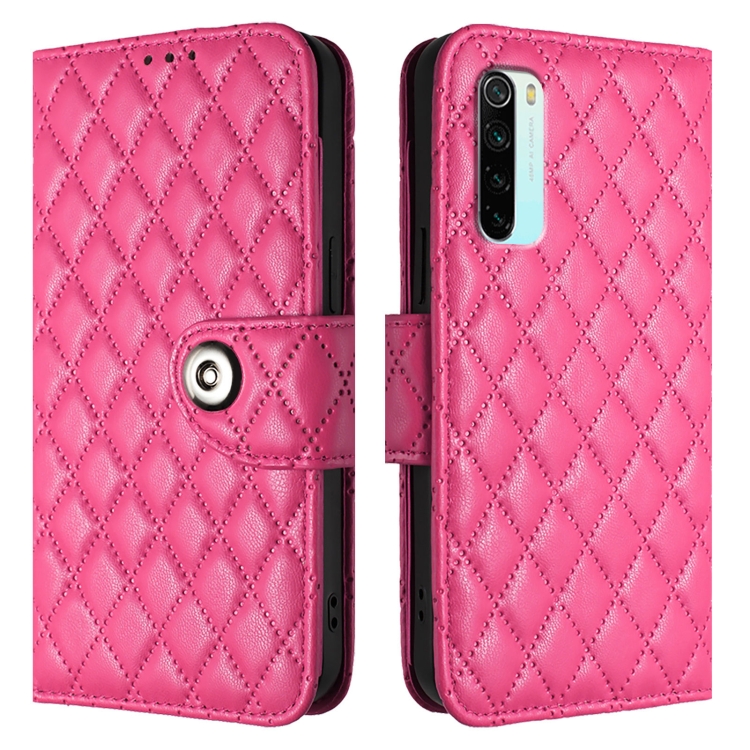 Para Redmi Note 8 Pro Funda de Cuero con Tapa con Textura Rómbica y Cordón (Rojo Rosa)