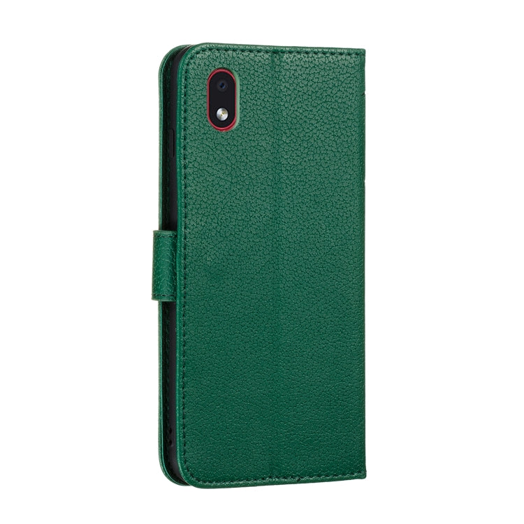 Funda de Cuero para Samsung Galaxy A01 Core con Tapa Horizontal, Billetera, Soporte y Ranuras para Tarjetas (Verde)
