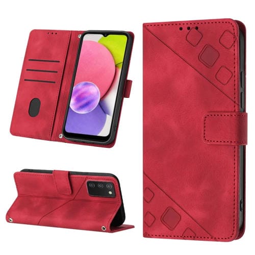 Estuche para Teléfono Samsung Galaxy A03S Cuero en Relieve Tacto de Piel (Rojo)