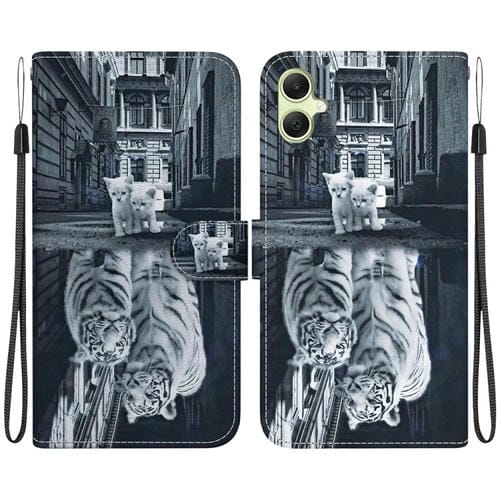 Funda para Teléfono Samsung Galaxy A05 Cuero Dibujo Coloreado Textura Cristal (Reflejo de Tigre Gato)