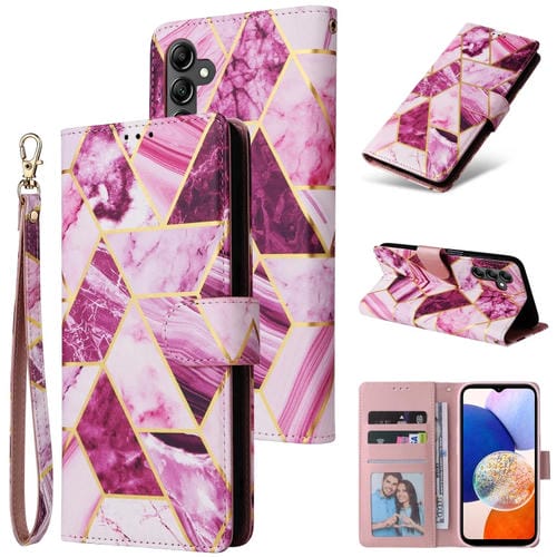 Funda de Cuero Samsung Galaxy A15 5G con Costuras Bronceadoras Mármol (Púrpura)