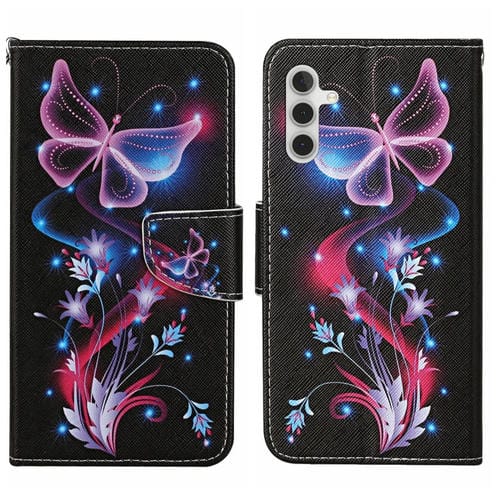 Funda de Cuero Samsung Galaxy A15 Patrón Dibujo Colores Mariposa Fluorescente