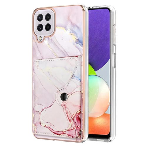 Estuche para Teléfono Samsung Galaxy A22 4G Versión UE con Ranura para Tarjeta Imd Patrón Mármol (Oro Rosa)