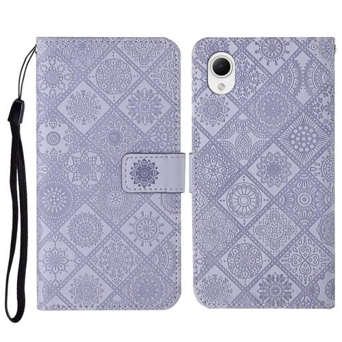 Estuche para Teléfono Samsung Galaxy A23E Cuero Patrón en Relieve Estilo Étnico (Púrpura)