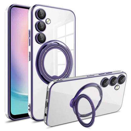 Estuche para Teléfono Samsung Galaxy A24 4G A25 Galvanoplastia Magsafe Soporte Rotación 360 Grados (Púrpura Oscuro)