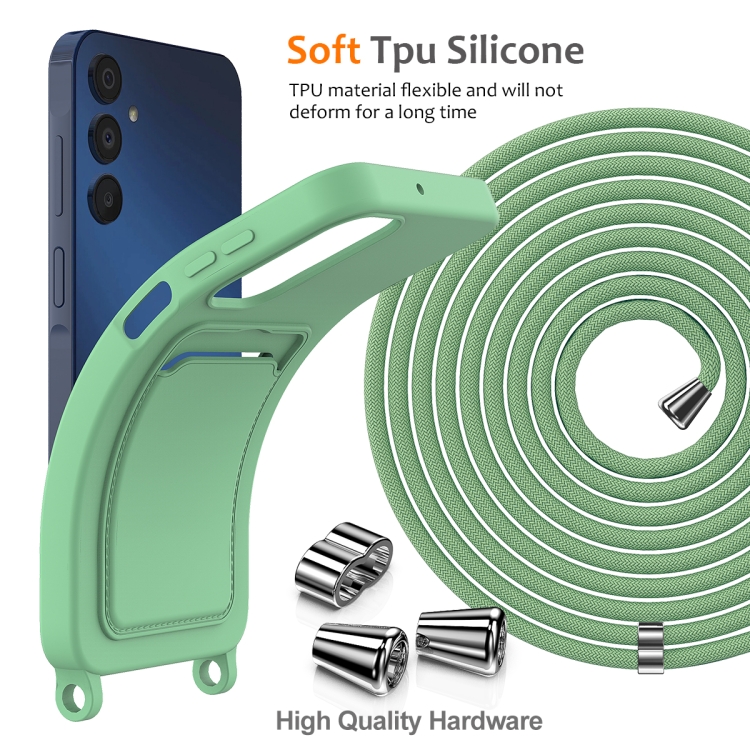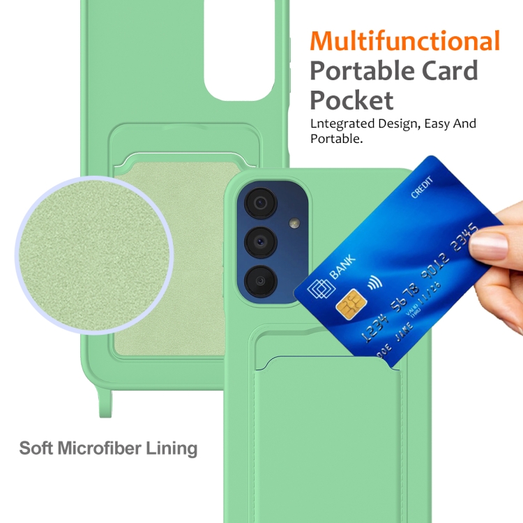 Bolsa para Tarjeta integrada Funda para Teléfono Samsung Galaxy A25 5G Silicona Líquida con Cordón (Verde)
