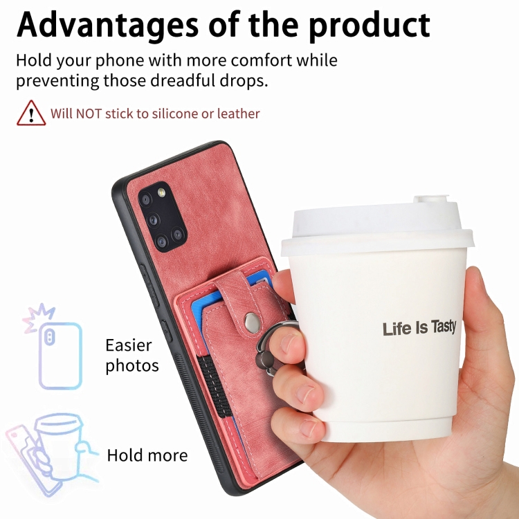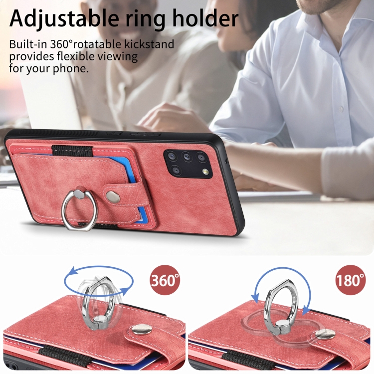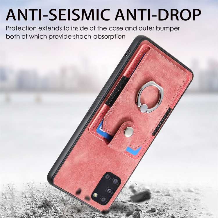 Funda para Teléfono Samsung Galaxy A31 con Billetera y Tarjeta con Anillo Sensación de Piel Retro (Rosa)