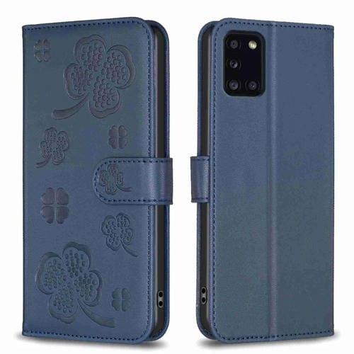 Funda para Teléfono Samsung Galaxy A31 Cuero con Relieve de Cuatro Hojas (Azul)