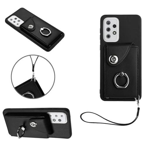 Funda para Teléfono Samsung Galaxy A33 5G Bolsa para Tarjeta Soporte para Anillo con Cordón (Negro)