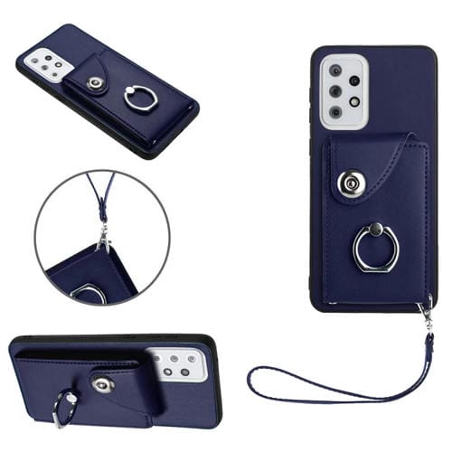 Funda para Teléfono Samsung Galaxy A33 5G de PU con Soporte para Anillo y Bolsa para Tarjeta con Cordón (Azul)