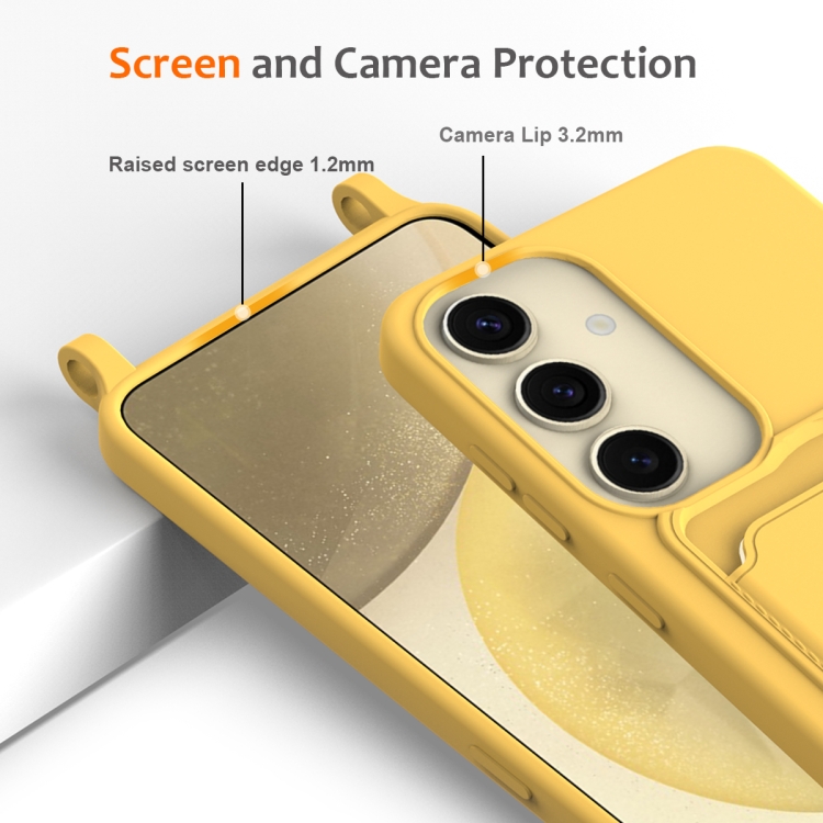 Bolsa para tarjeta integrada funda para Samsung Galaxy A35 5G silicona líquida color amarillo con cordón