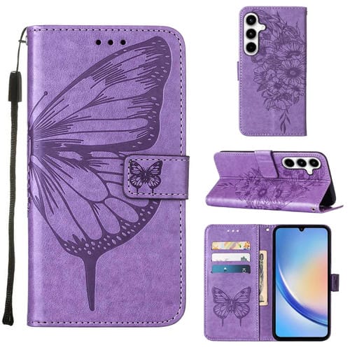 Funda de Cuero Samsung Galaxy A35 5G con Mariposa en Relieve (Púrpura)