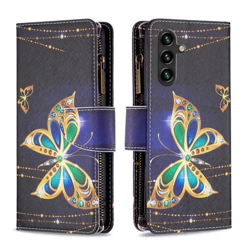 Funda de Cuero para Samsung Galaxy A35 con Cremallera y Patrón Mariposa Grande