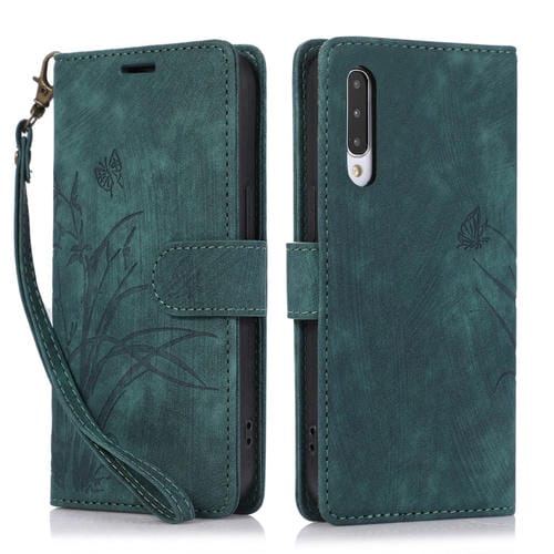 Funda para Teléfono Samsung Galaxy A50 A50S Cuero Relieve Mariposa Orquídea (Verde)