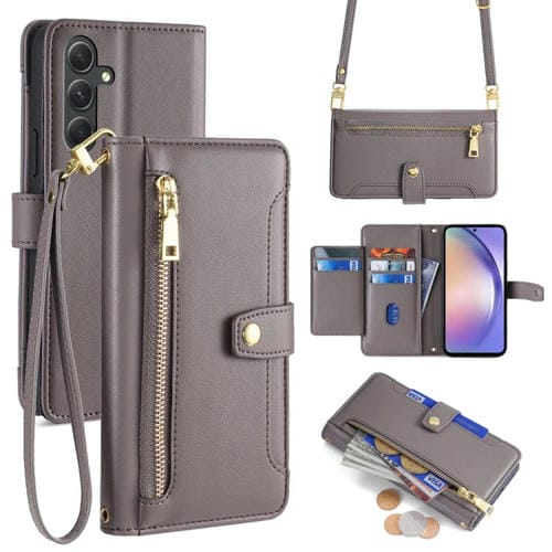 Funda para Samsung Galaxy A54 5G Cuero con Billetera con Cremallera y Cuerpo Cruzado Textura de Oveja (Gris)