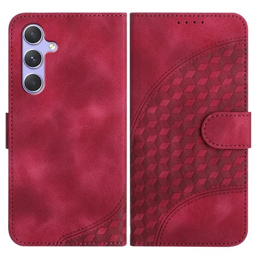 Funda de Cuero Samsung Galaxy A54 5G Yx0060 con Relieve y Cabeza de Elefante con Cordón (Rojo Rosa)
