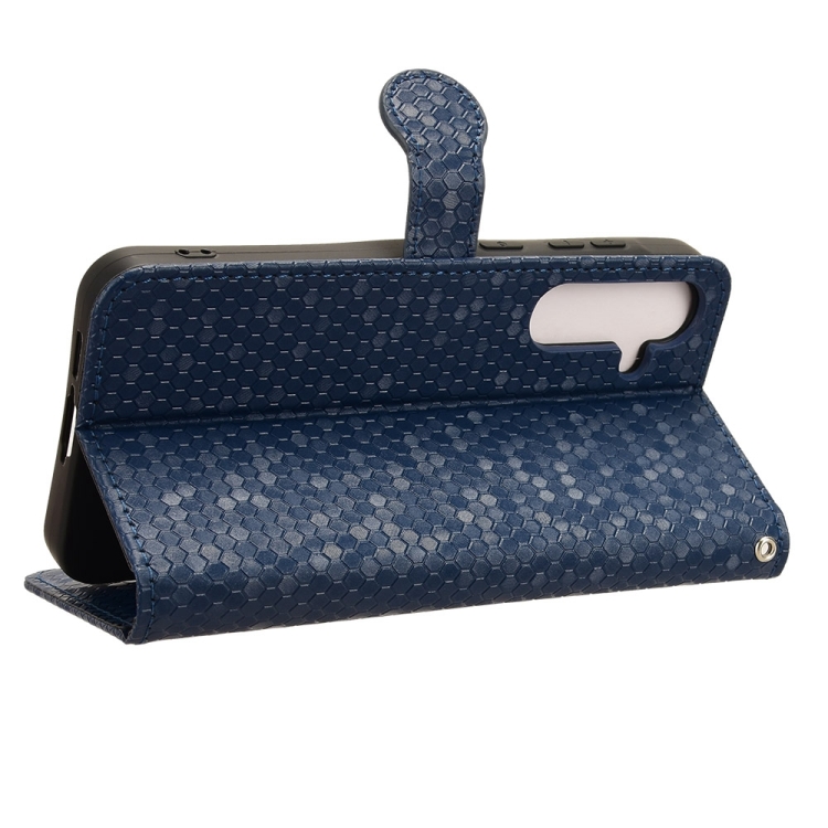 Funda de Cuero Samsung Galaxy A55 5G Textura Punto de Panal (Azul)