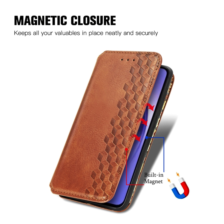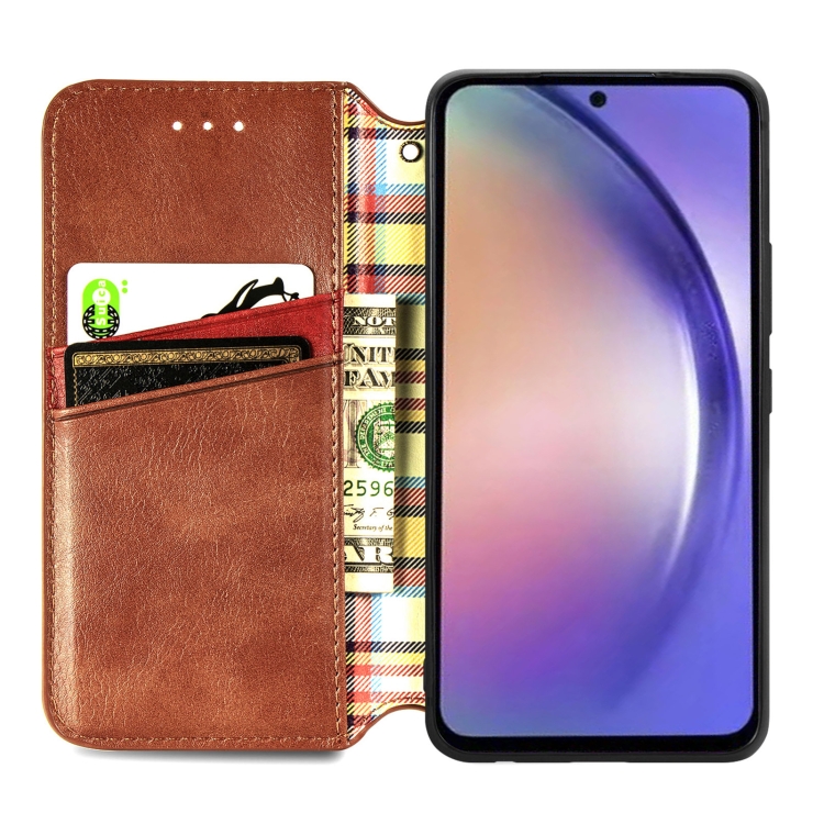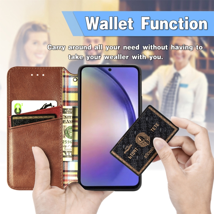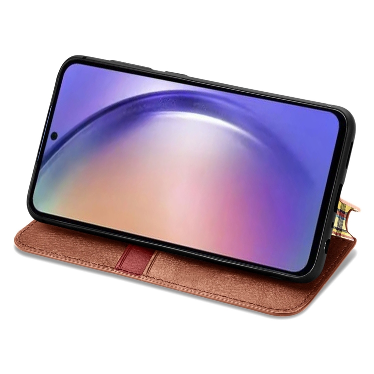 Funda para Teléfono Samsung Galaxy A55 5G Cuero Magnético Prensado Rejilla Cúbica (Marrón)