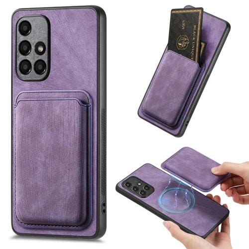 Funda de Teléfono Samsung Galaxy A71 Magnética con Bolso de Tarjeta de Cuero Retro (Púrpura)