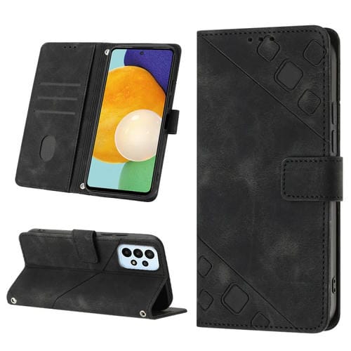 Estuche para Teléfono Samsung Galaxy A72 5G 4G Cuero En Relieve con Tacto de Piel (Negro)