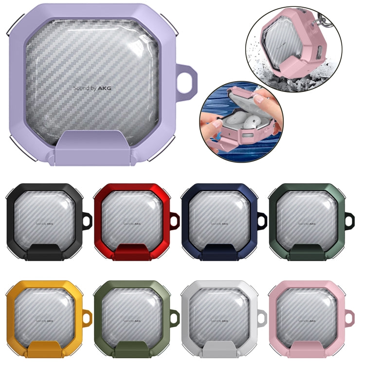 - 1x Funda híbrida para Samsung Galaxy Buds2 / Live / Pro / FE PC TPU Fibra de Carbono Transparente con Gancho y Soporte (Rojo)