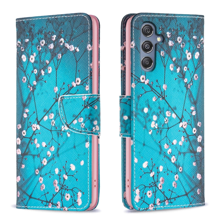 Estuche de teléfono Samsung Galaxy M34 5G Cuero con patrón dibujo coloreado (Flor del Ciruelo)