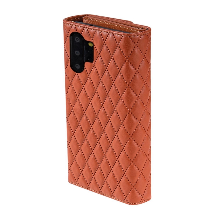 Estuche para Teléfono Samsung Galaxy Note10 Cuero Rómbico Billetera MultiTarjeta con Cremallera (Marrón)
