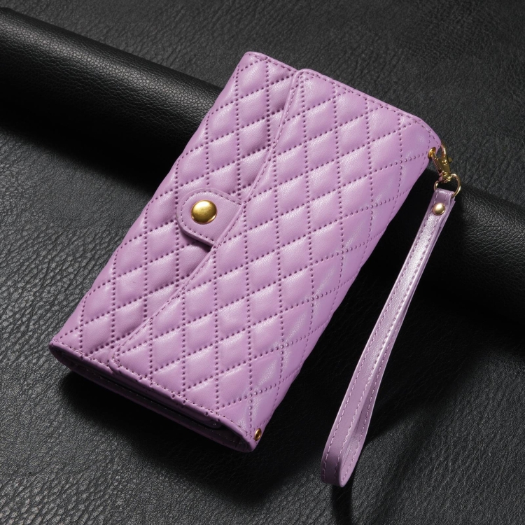Funda para Teléfono Samsung Galaxy Note10 Cuero Rómbico Billetera MultiTarjeta Cremallera (Púrpura)