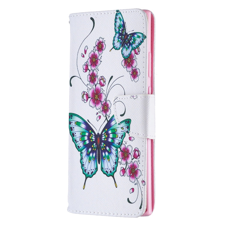 Estuche de Cuero abatible Samsung Galaxy Note20 con Patrón de Dibujo, Soporte, Ranuras para Tarjetas y Billetera (Flor de Durazno y Mariposa)