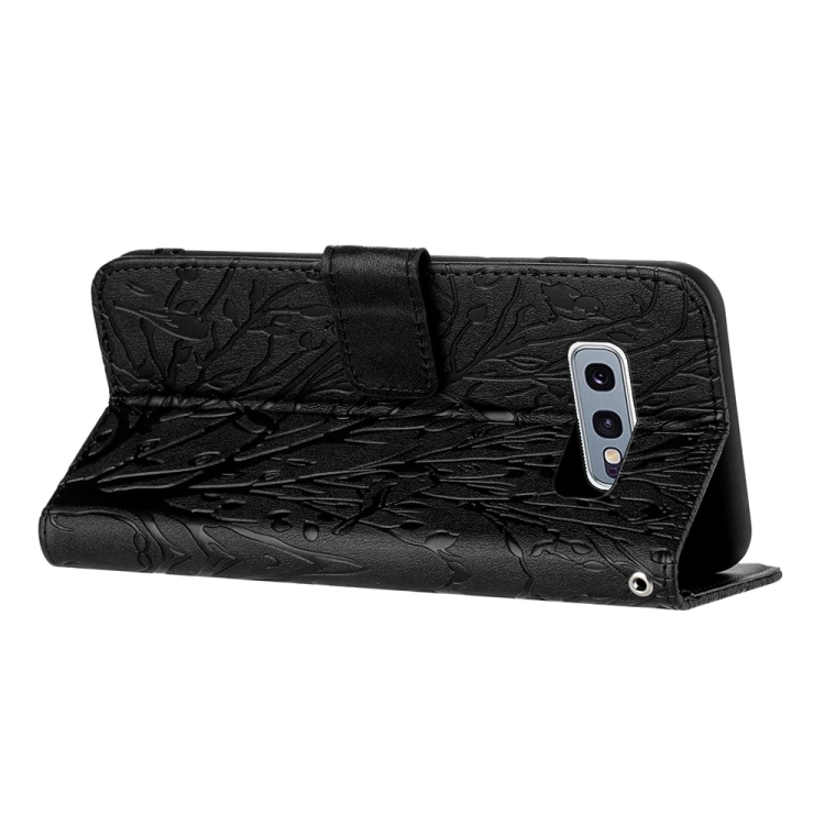 Funda para Teléfono Samsung Galaxy S10E Cuero con Patrón En Relieve Tree Birds (Negro)