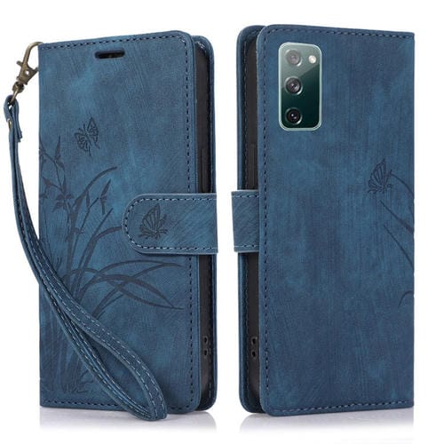 Funda para Teléfono Samsung Galaxy S20 FE Cuero con Relieve Mariposa Orquídea (Azul)