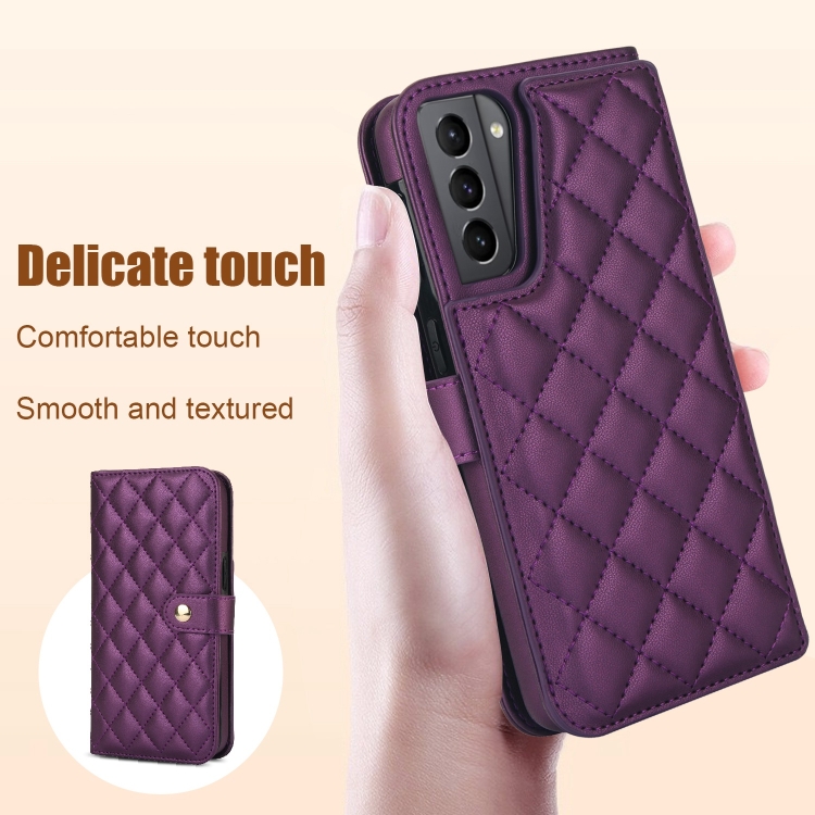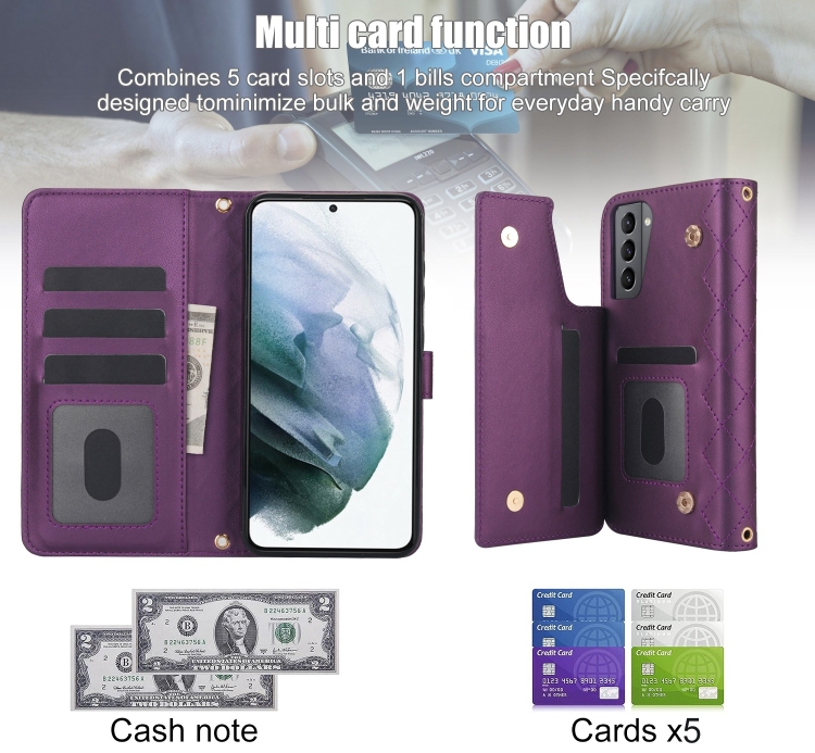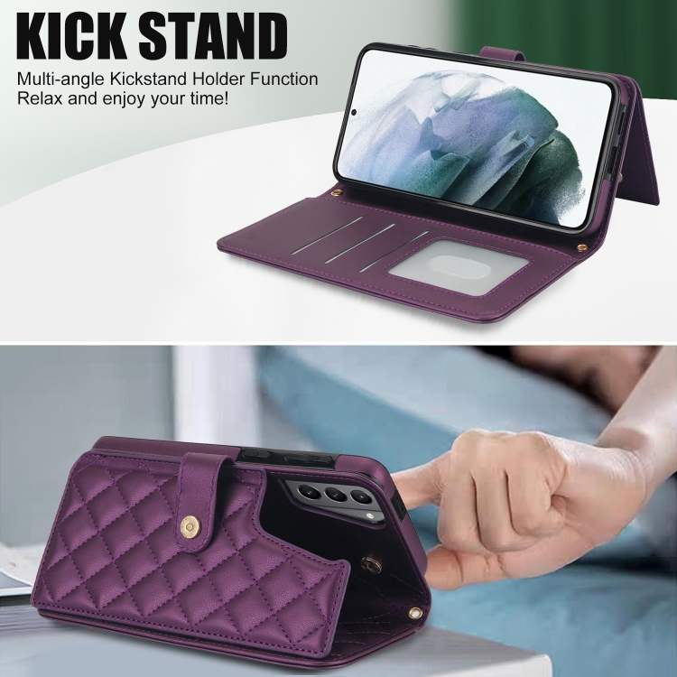 Estuche para Teléfono Samsung Galaxy S21 5G Crossbody Cuero Rómbico Multifunción (Púrpura Oscuro)