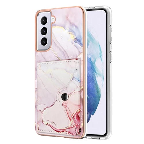 Estuche para Teléfono Samsung Galaxy S21 5G con Ranura para Tarjeta Imd y Patrón de Mármol (Oro Rosa)