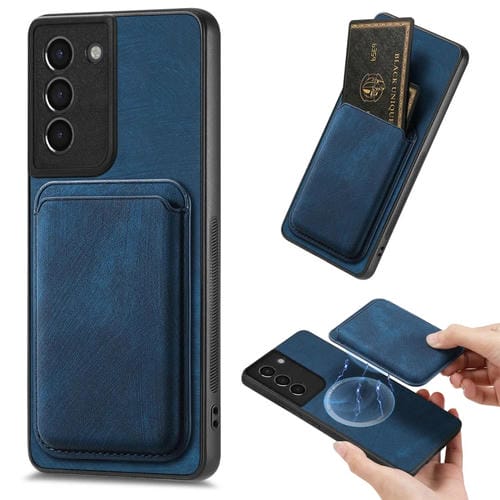 Funda de Teléfono Samsung Galaxy S21 5G Magnética con Bolsa de Tarjeta Cuero Retro (Azul)