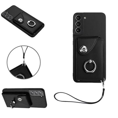 Funda para Teléfono Samsung Galaxy S21 FE 5G Bolsa para Tarjeta Soporte para Anillo con Cordón (Negro)