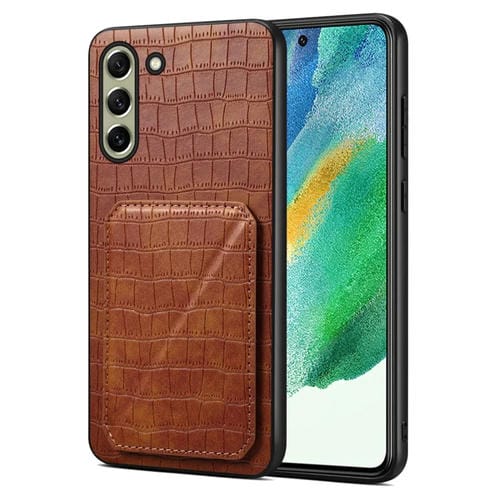 Funda Trasera Denior para Samsung Galaxy S21 FE 5G Piel de Cocodrilo con Soporte (Marrón)