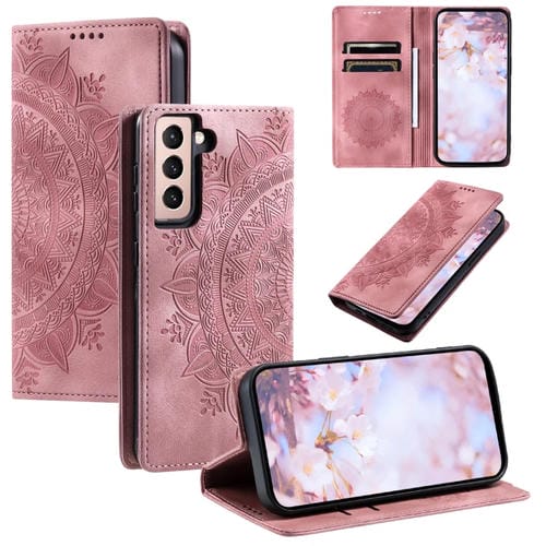 Estuche para Teléfono Samsung Galaxy S21 FE 5G Cuero Magnético con Relieve de Tótem (Oro Rosa)
