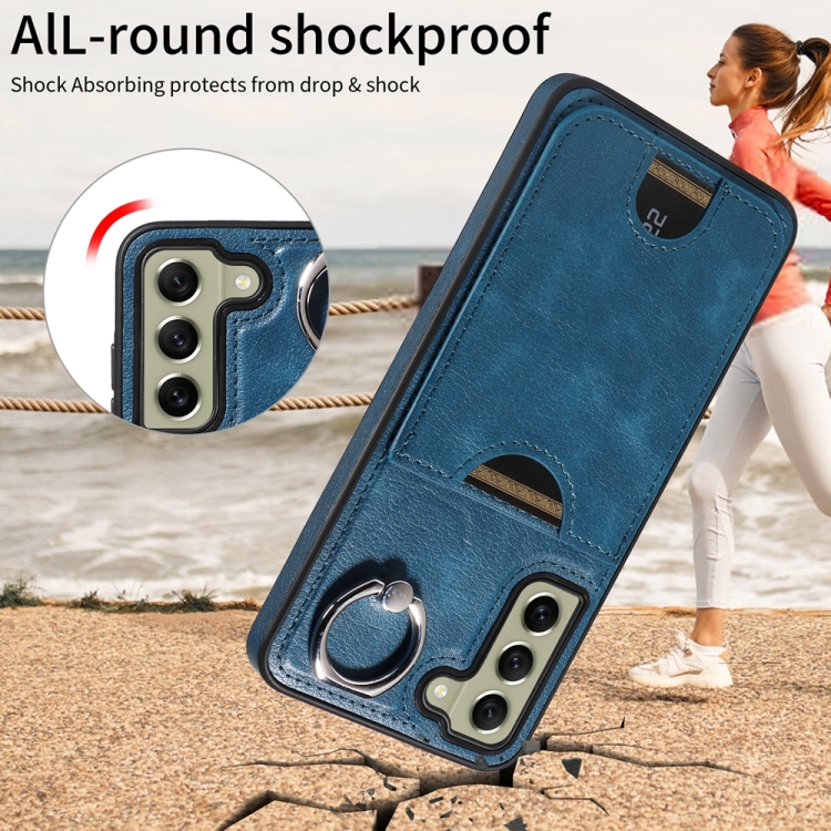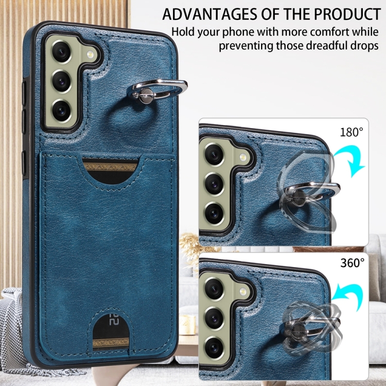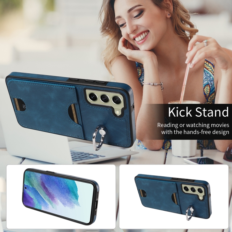Funda para Teléfono Samsung Galaxy S21 FE 5G con Soporte para Anillo y Ranura para Tarjeta (Azul)