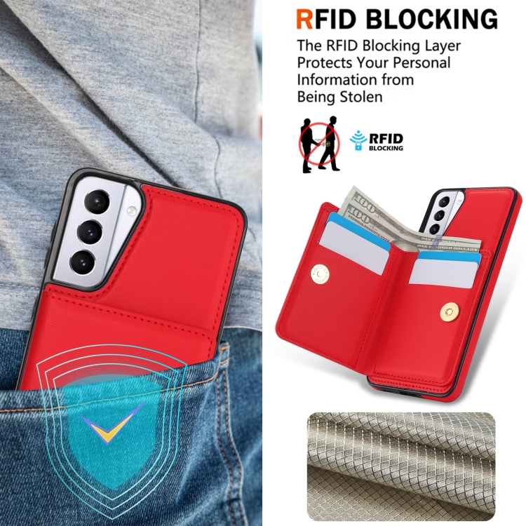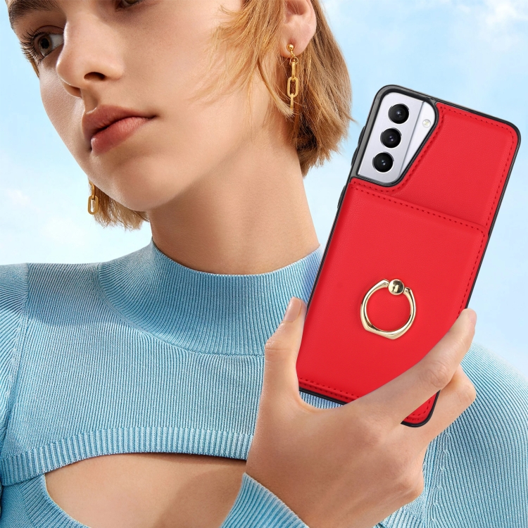 Estuche para teléfono Samsung Galaxy S21 FE 5G Rfid Antirrobo con Soporte para Anillo (Rojo)
