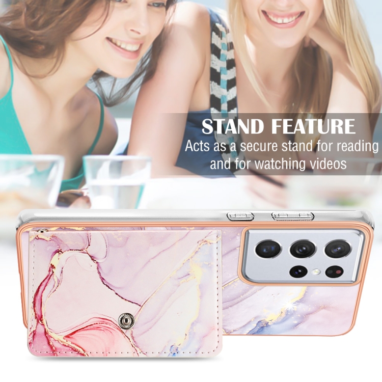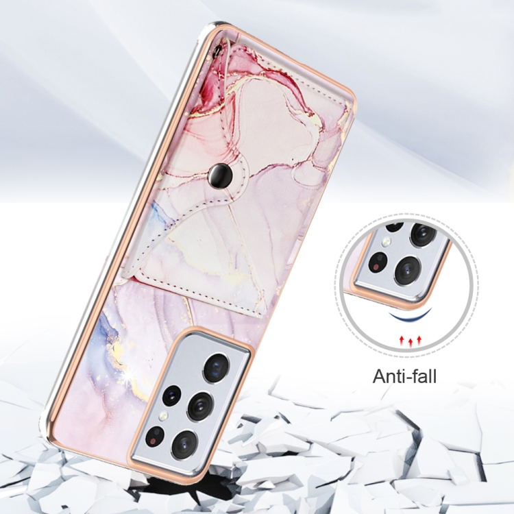 Estuche para Teléfono Samsung Galaxy S21 Ultra 5G con Ranura para Tarjeta Imd con Patrón de Mármol (Oro Rosa)
