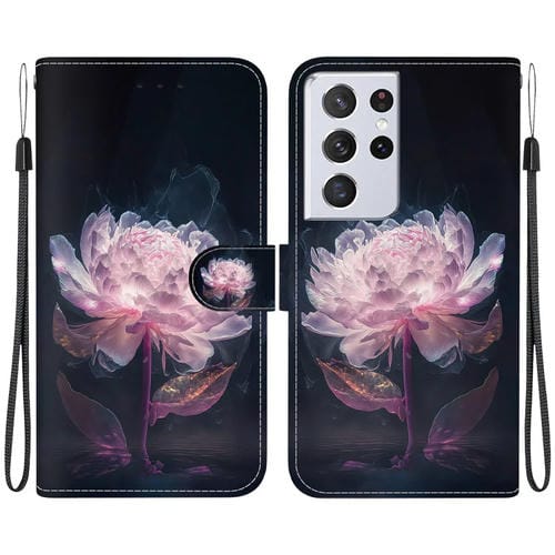 Funda para teléfono Samsung Galaxy S21 Ultra 5G Cuero dibujo coloreado textura cristal (Peonía Púrpura)