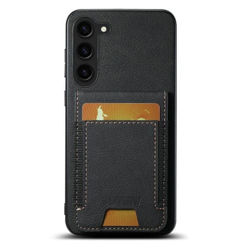 Funda para Teléfono Suteni H03 para Samsung Galaxy S22 + 5G con Soporte para Tarjeta Cuero Litchi (Negro)