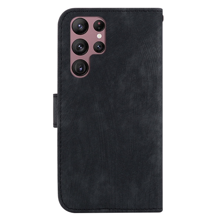 Para Samsung Galaxy S22 Ultra 5G Funda para teléfono de cuero con relieve Little Tiger (negro)