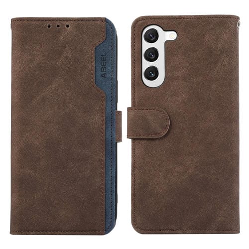 Funda de Cuero Abeel para Samsung Galaxy S23 5G Color Block Magnética Rfid (Marrón-Azul)